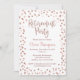 Invitation de la partie de retraite avec confettis de parties scintillant d'or rose.