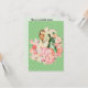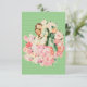 Invitations présentant une illustration vintage des années 1950 d'un couple entouré de fleurs avec un arrière - plan de mini coeurs verts. Customisez-les avec votre propre texte. Cool rétro !