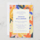 Retro Artsy Invitation de la fête Abstraite de graduation botanique en bleu, orange, rose et jaune