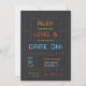 Ces fantastiques invitations de fête d'anniversaire de thème de joueur avec une vidéo de jeu d'arcade vintage de lettrage rétro sur une grille de points gris foncé et blanc. "[Nom] a atteint le niveau [âge]" apparaît en haut dans les lettres numériques rétro, avec les détails de votre fête en dessous. Parfait pour les jeux vidéo camion ou jeux d'arcade fête d'anniversaire!