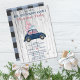 Invitations amis et la famille pour se réunir pour les vacances avec cette mignonne invitation rétro Noël fête. Cet invitation de fête de Noël présente un arrière - plan rustique en bois gris clair avec une jolie voiture bleue surmontée d'un sapin de Noël rose et des cadeaux. Le dos de la carte de Noël a un motif bleu plaid. Personnalisez avec toutes vos infos de fête.