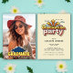 Préparez-vous à faire la fête comme si c'était la les années 70 avec notre Retro Colorful Photo Graduation Party Invitation! Ce design branché fait revenir les vibrations super avec son dégradé vibrant et sa typographie rétro. Ajoutez votre photo.