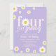 Retro Daisy Four Ever Super Purple 4e anniversaire Invitation
