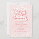 Invitation à la douche nuptiale rose marguerite avec marguerites style années 70 et fontes et couleurs boho.