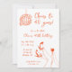 Invitation Retro griffé Anniversaire avec jambes de boule disco avec talons et vin.