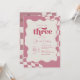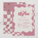 Invitation Retro Groovy Pink Checkered Three 3rd Birthday Inv