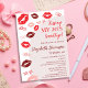 Célébrez un fabuleux 30e anniversaire en style avec cette invitation à la fête d’anniversaire "Kissing My 20’s Goodbye"! Idéal pour une fête girly, branchée et drôle, cette invitation design est conçue pour sa journée spéciale. Doté d'une demi-arche d'inspiration rétro et de rose vif sur la droite, il dégage une atmosphère moderne tout en restant ludique. Le côté gauche présente un assortiment de marques de baiser dans différentes teintes et tailles de rouge à lèvres, ainsi que des phrases d'adieu gaies comme "ciao", "adios" et "see ya", toutes placées dans une coquette, motif aléatoire. Entièrement personnalisable, ce modèle modifiable vous permet de personnaliser votre invitation, ce qui en fait le choix idéal pour fêter un 30ème anniversaire d'étape dans le style. Choisissez cette invitation unique et amusante pour une fête d'anniversaire mémorable "Au revoir 20 ans" !