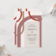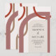 Une touche moderne sur un style art déco glamour ou des jours passés, cette invitation de mariage colorée présente des formes géométriques courbes entrelacées autour de la mise en page du texte de l'invitation. Les couleurs comprennent des nuances neutres de terre cuite, de rouille et de beige, avec une forme ivoire neutre encadrant votre texte. Les résultats sont uniques et artistiques avec un attrait rétro.