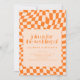 Invitation Retro Orange Abstract Check Wedding QR Code RSVP