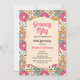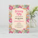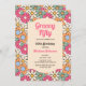 Vert, orange, rose et pêche retro fleurs super sans couture motif Invitation d'anniversaire. Ce design amusant et dynamique est parfait pour quiconque cherche à ajouter une touche de rétro à sa journée spéciale. Avec ses couleurs audacieuses et ses motifs floraux super, cette invitation donnera le ton d'une fête mémorable.