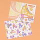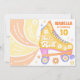 Un design ludique et rétro inspiré du roller dans la palette de couleurs rose pastel, orange, violet et jaune. Sur le devant se trouve une patinoire jaune et le texte "Let's Roll" dans un script rétro avec une vitesse éclatée derrière, et sur le dos est un motif ludique et lumineux de patins à rouleaux. Customisez les détails de votre fête ! Voir l'ensemble de la collection de fêtes de correspondance.