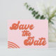 Retro rose Arch Wedding Enregistrer la date Carte postale Retro rose et rouge enregistrer la carte de date avec une belle police rétro en tête avec une ombre portée brune. Ce design présente les détails sur le dos en rose sur un arrière - plan rouge.