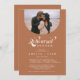 Fêtons la soirée de répétition de notre couple préféré avant le grand jour avec ce classique et élégant rétro calligraphie vintage Dîner de répétition Script en blanc sur boho beige terre cuite tonalité avec une photo de forme voûtée en haut. Quand le rétro rencontre la touche moderne.
