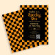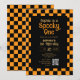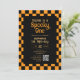 Invitation Retro Spooky One Checkered Orange 1st Birthday
