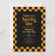 Invitation Retro Spooky One Checkered Orange 1st Birthday