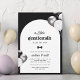 Surprenez vos proches avec cette invitation élégante et élégante au baby shower garçon, avec script rétro, cravate élégante, tuxedo, ballons et texte personnalisé de votre choix.