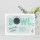 Les invitations à la soirée de bowling, mignonnes et créatives, comportent "laissez les bons moments bowl" en haut en lettres rétro avec une boule de bowling à la place de la lettre "O". Personnalisez avec les détails de votre soirée de fiançailles de thème de bowling sous. La date et l'heure apparaissent sur une épingle de bowling de style vintage à droite.