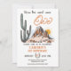 Retro Western How The West Was One 1st Birthday Invitation Le garçon mignon invité à l'ouest sur le thème du premier anniversaire avec un paysage de désert de cactus, le mot de style corde un, et le fer à cheval dessiné à la main. L'invitation du premier anniversaire de ce garçon sauvage de l'ouest est idéale pour une fête de premier anniversaire à thème occidental.