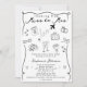 Retro Funky Whimsical Hand Drawn Miss to Mrs Bridal Shower Invitation - Une douche nuptiale à thème de voyage commence par un invitation qui inspire la dérive. Avec des illustrations étranges, amusantes et jolies à la main avec un avion, un passeport, des anneaux de fiançailles, un bouquet de verres à champagne clinquant de fleurs, un joli bagage avec le coeur, la caméra, et des lunettes de soleil, le tout agrémenté d'un cadre de griffes fantaisiste. Voyager de Mlle à Mme est écrit en caractères vintages et lettres. Modifiez ce modèle de douche nuptiale avec vos propres détails d'événement. Tout le texte est personnalisable. Sur le dos vous trouverez des illustrations encore plus amusantes, y compris un globe terrestre, une carte et des bagages. Disponible à la fois en téléchargement numérique imprimé et écologique, parfait pour l'envoi par SMS, email ou médias sociaux.