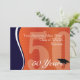 L'élégante invitation à la réunion de 50 ans en orange, bleu et blanc attirera l'attention de ceux qui la reçoivent !
