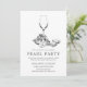 Un ensemble d'invitations de fête de perle pour votre prochaine chasse aux perles. Ces invitations présentent un texte simple de couleur gris charbon foncé, ainsi qu'une illustration unique d'huître et de vin centrée vers le haut. Au verso de l'invitation se trouve un noir charbon doux. Tous les éléments de cette invitation sont ajustables en utilisant la fonction de personnalisation.