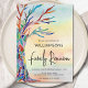 Prévoyez-vous une réunion familiale ou une réunion familiale? Cette invitation unique présente un arbre généalogique en mosaïque, un arrière - plan coloré en aquarelle et une typographie stylisée. Mosaïque originale et aquarelle © Michele Davies.