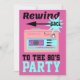 Rewind Back to the 80's, ce design présente un style rétro des années 1980 en rose et bleu avec un texte disant, "Rewind Back to the 80's".