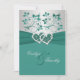 Invitation RIBBON IMPRIMÉ Turquoise Argent Rejoint Coeurs Inv