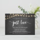 Beautiful Nothing Fancy, Just Love, Mariage Elopement Faire-part / Carte d'invitation, en tableau de bord de ferme rustique, String Lights design. C'est parfait pour votre réception de mariage et fête post-mariage. Ajoutez vos détails dans la police correspondante / lettrage. #TeeshaDerrick