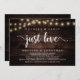Beautiful Nothing Fancy, Just Love, Mariage Elopement Faire-part / Carte d'invitation, dans rustique ferme en bois foncé arrière - plan, String Lights design. C'est parfait pour votre réception de mariage et fête post-mariage.
