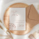 Crème moderne et minimaliste et écriture terre cuite faire-part de mariage décontracté avec le texte "Rien de fantaisie, juste l'amour" et élégant design fleur sauvage & papillon.