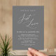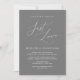 Annoncez élégamment votre bonheur éternel avec notre carte d'invitation de cérémonie d'élopement de mariage sur le thème gris foncé romantique moderne, "Rien de fantaisiste, juste de l'amour". Conçue pour les couples qui poursuivent leur histoire d'amour, cette invitation établit un parfait équilibre entre sophistication et charme, plantant le décor pour un événement inoubliable. Dotée d'un design de lettrage contemporain moderne, elle ajoute une touche de grâce intemporelle à votre journée spéciale. Conçue par la talentueuse TeeshaDerrick, cette invitation est une expression élégante de votre amour durable.