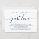 Beau carton d'invitation élégant et classe bleu marine pour annonce d'évasion amoureuse (Rien de fantaisiste, juste de l'amour). C'est parfait pour votre réception de mariage et fête de célébration après le mariage. Ajoutez vos coordonnées avec la même police / lettrage.