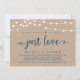 Belles lumières de chaîne de ferme rustique moderne, police de script bleu marine sur fond de papier kraft, annonce de mariage en fuite, carte d'invitation (rien de fantaisiste, juste de l'amour). C'est parfait pour votre réception de mariage et votre fête de célébration après le mariage. Ajoutez vos détails dans la police / lettrage correspondant. #TeeshaDerrick