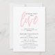 Créez l'invitation parfaite pour un mariage décontracté ou une célébration de réception après une fugue, avec ce design de typographie rose moderne et tendance, mettant en vedette une typographie script écrite à la main. Contactez le concepteur pour des produits assortis. Copyright Elegant Invites, tous droits réservés.