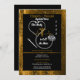 Un caducée doré avec une ligne EKG est superposé sur un stéthoscope avec une aiguille tirée en dessous. La citation dit : "Elle est prête à appeler les coups." Il suffit de personnaliser ce design de fête de remise de diplômes avec le nom, le titre, l'année de remise de diplômes et l'école de votre infirmière préférée, ainsi que les détails de la célébration. Panneaux noirs sur un arrière - plan parties scintillant en faux or sur le devant avec un arrière - plan noir sur le dos. Design par Holiday Hearts Designs (droits réservés).