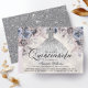 Invitation Quinceañera florale moderne. Conception avec robe argentée, éléments floraux sur un fond perle brillant. Personnalisez davantage avec les détails de votre fête sur le devant.