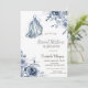 Elégante robe bleue chic, roses bleus sur un arrière - plan blanc.