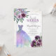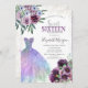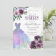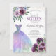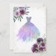 Elégante robe sombre, fleurs violettes et cadre confetti.