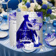 Petite taille Royal Blue Silver Quinceanera Invitation. Jolie robe bleue & talons étincelants avec tiare et masque argent. Remarque : Toutes les images plates n'ont pas de vrais bijoux !
