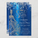 Parties scintillant en argent tiara, confetti et robe sur arrière - plan métallique bleu.