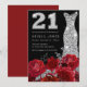 Invitation Robe Diamond Argent Rose rouge 21e fête d'annivers