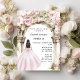 Une grande arche en marbre décorée de fleurs roses. Une fille avec une robe rose pâle. Personnalisez et ajoutez un nom et des détails.
