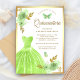 Invitation Robe Florale verte Lime Papillon Or Quinceanera