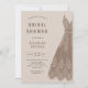 Donnez le ton parfait pour une douche nuptiale cowgirl-chic avec cette Invitation de robe nuptiale occidentale, avec une illustration élégante d'une robe nuptiale détaillée en dentelle dans les tons bruns chauds contre un arrière - plan doux et rustique brun pâle. Ce design d'inspiration occidentale allie charme rustique et élégance vintage, ce qui en fait l'endroit idéal pour une grange de douche nuptiale, une célébration de ranch, un événement de mariage campagnard ou un rassemblement boho western. Que vous planifiez une soirée de ferme du sud ou un brunch de cowgirl chic, cette invitation monochromatique de l’ouest ajoute une touche de sophistication country intemporelle à la journée spéciale de la mariée.