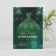 Invitation Robe verte de fleurs QR Code Quinceanera