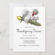 Une carte d'invitation pour le dîner de Thanksgiving amusante et douce où la Turquie s'est échappée de Thanksgiving et voyage dans l'univers avec l'aide de sa fusée.