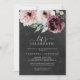 Ce gris romantique floral fêtons l'invitation est parfait pour une soirée de fiançailles élégante, mariage après la fête, la retraite, la remise des diplômes ou tout événement heureux. Le design boho rustique moderne présente des fleurs d'aquarelle romantiques dans des tons doux de bordeaux, mauve, rose rousse et blanc crème avec des feuilles verts.