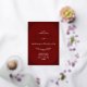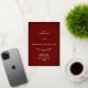 Embrassez la magie de l'amour avec nos invitations de mariage romantiques Art Déco avec feuille d'or. Ces invitations exquises présentent des tons élégants bordeaux et or, ornées de votre choix d'accents de feuille d'or, d'argent ou de rose gold. Avec leur design minimaliste et une touche de classe, ces invitations donnent le ton parfait pour une célébration de mariage vraiment magique. Ajoutez votre photo de couple au dos de la carte pour la rendre encore plus spéciale.