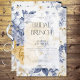 Ce design romantique présente de délicates fleurs jaunes au beurre, bleues et blanches poussiéreuses sur un arrière - plan blanc immaculé, avec une zone de texte blanche transparente pour que la beauté du design floral reste sans obstruction. Créé par Simply Farmhouse Press.